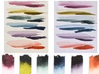 左側は水彩画用紙に描いた際の 色見本で、右側は画仙紙に 描いた際の色見本となります。